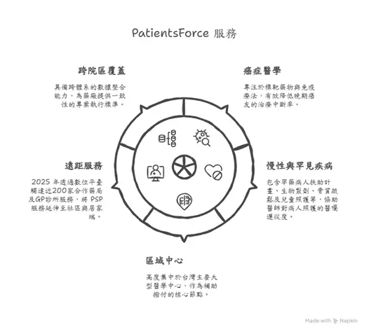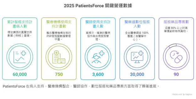 PatientsForce 在 2025 年展現了台灣的醫療網絡病支持服務覆蓋能力,確保精準醫療資源不再侷限於都會中心。